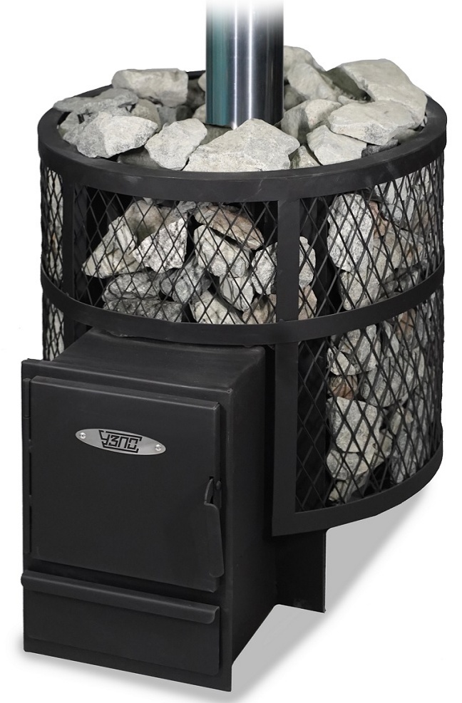 Печь для бани дровяная «Анютка Прайм» рассчитана для небольшой парной, объемом до 12 м3, кожух сетка имеет круглую форму и вмещает в себя до 65 кг камней.