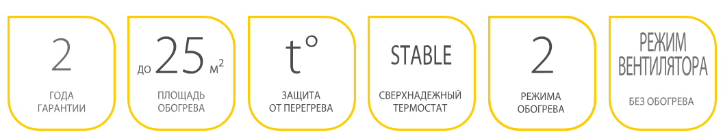 | Площадь обогрева, м²* | до 25 | до 25 | до 25 |