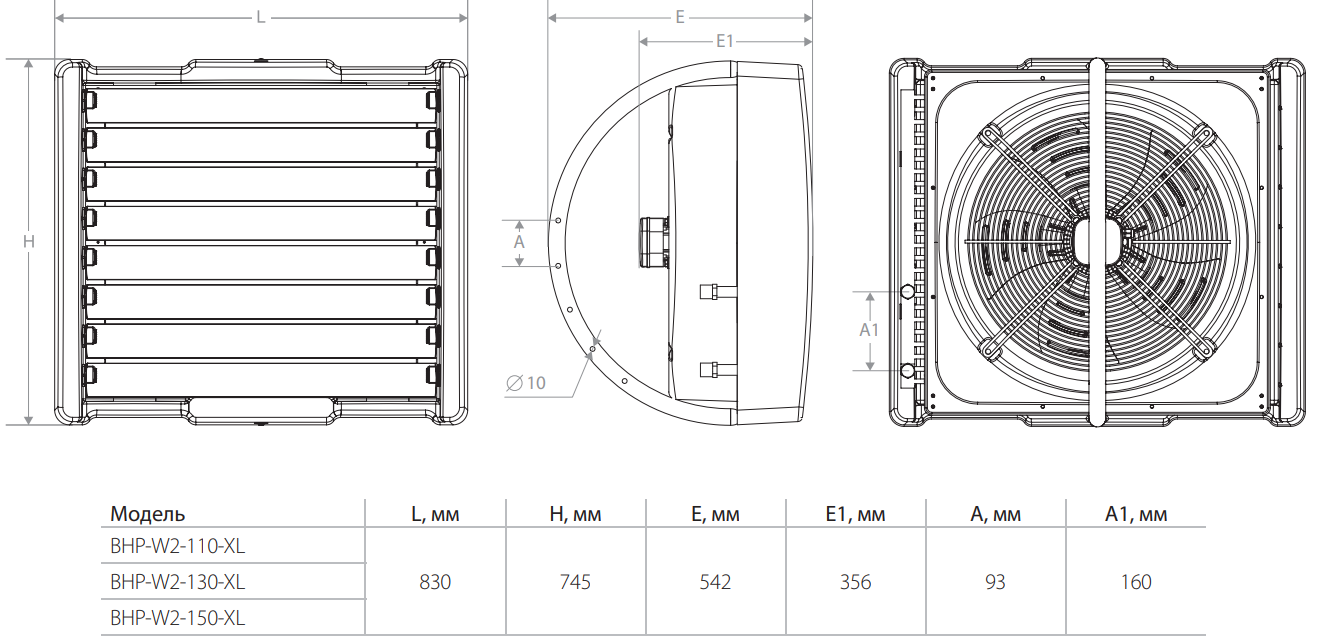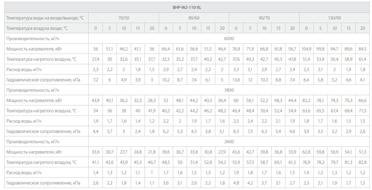| Параметр / Модель | BHP-W2-110-XL | BHP-W2-130-XL | BHP-W2-150-XL |