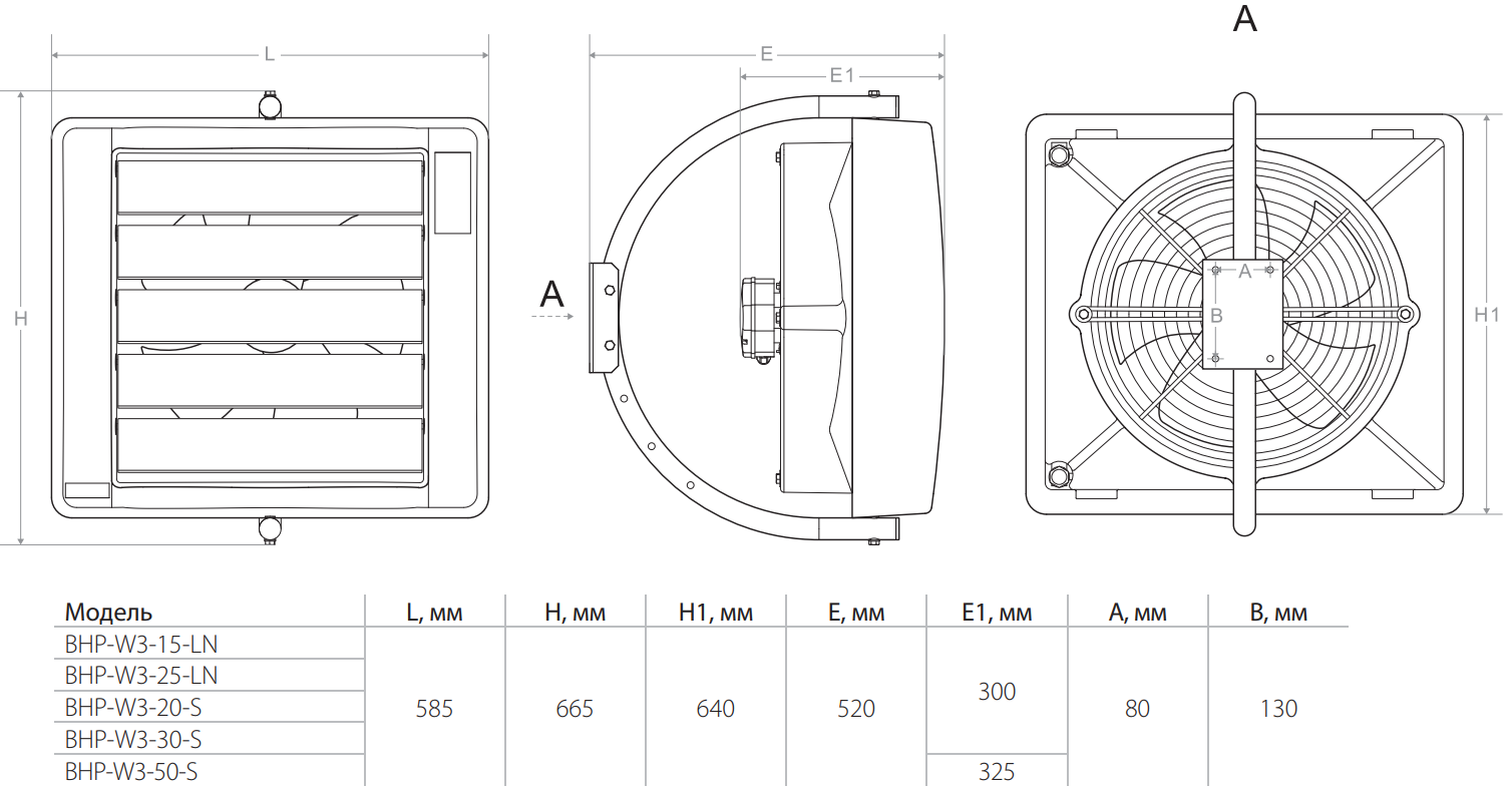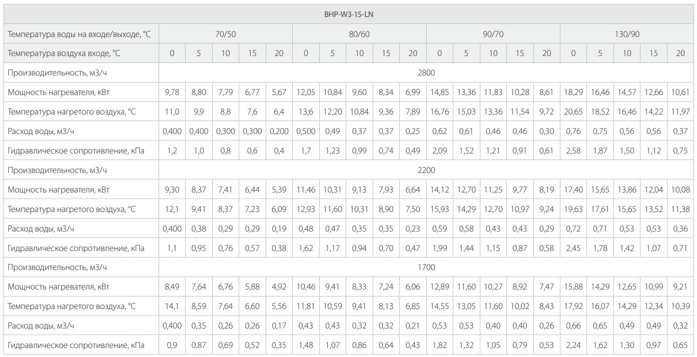 | Параметр / Модель | BHP-W3-15-LN | BHP-W3-25-LN | BHP-W3-20-S | BHP-W3-30-S | BHP-W3-50-S |