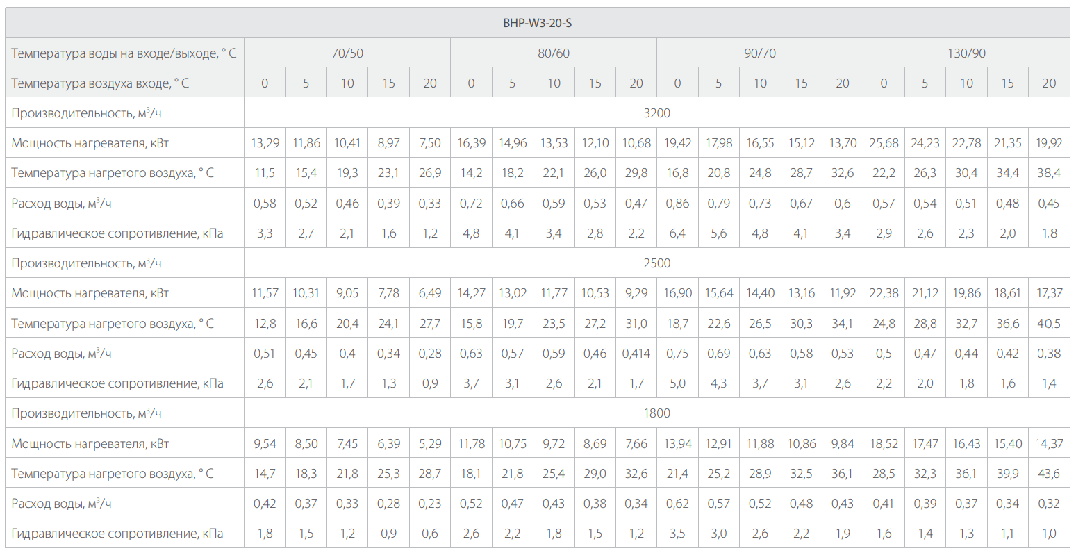 | Параметр / Модель | BHP-W3-15-LN | BHP-W3-25-LN | BHP-W3-20-S | BHP-W3-30-S | BHP-W3-50-S |