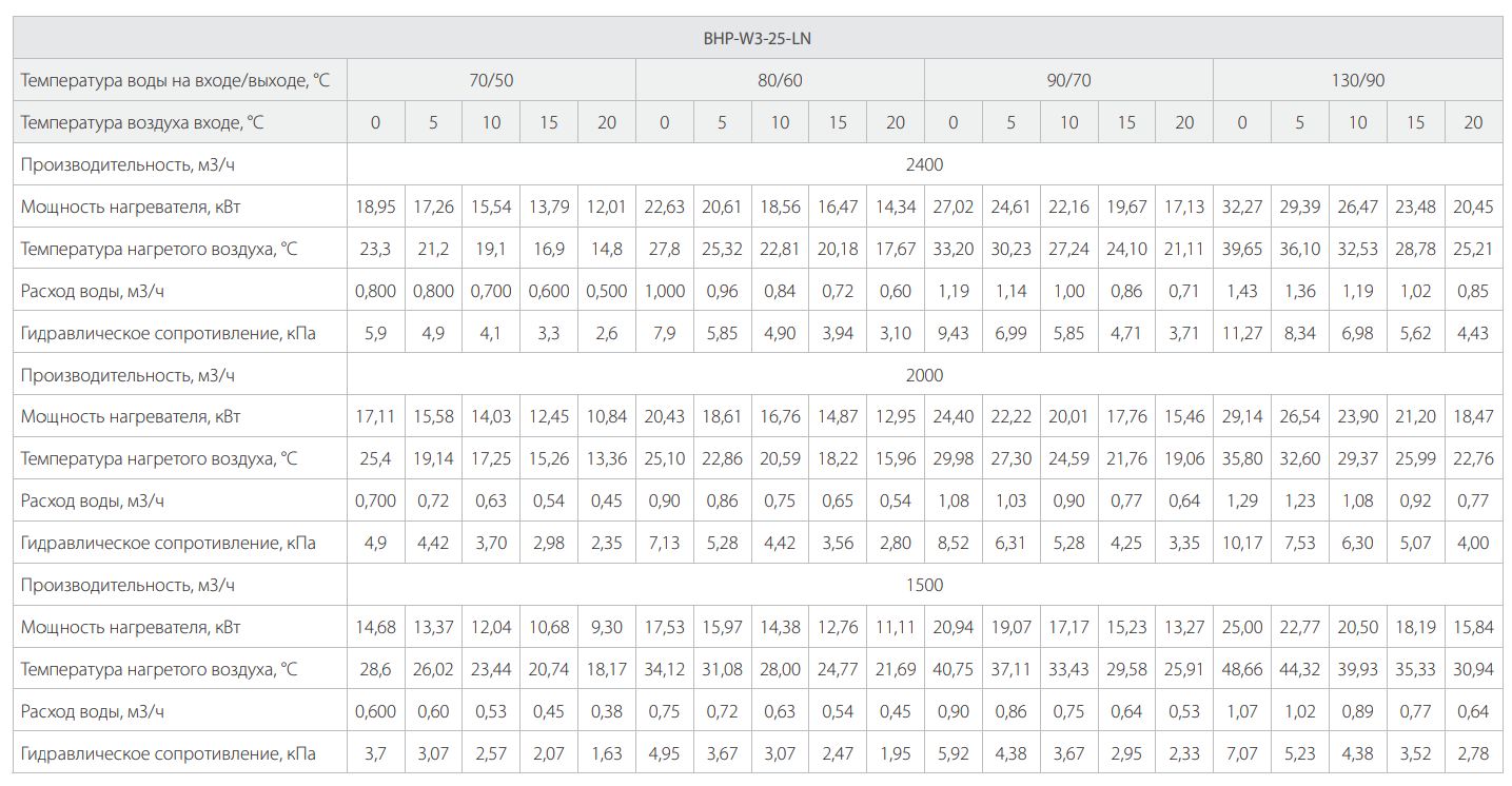 | Параметр / Модель | BHP-W3-15-LN | BHP-W3-25-LN | BHP-W3-20-S | BHP-W3-30-S | BHP-W3-50-S |