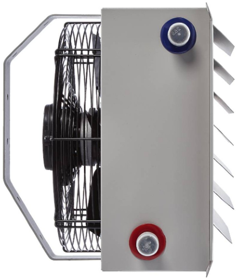 Водяной тепловентилятор устанавливается на стены, колонны или потолок при помощи кронштейна, который входит в комплект поставки. Кронштейн позволяет регулировать угол наклона тепловентилятор в горизонтальной и вертикальной плоскости.