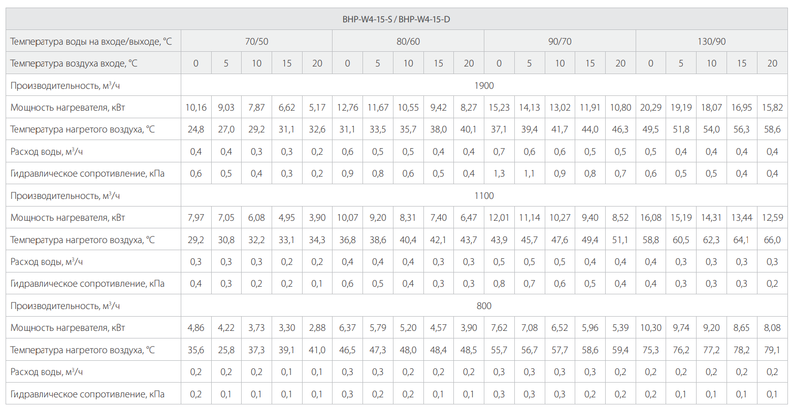 | Параметр / Модель | BHP-W4-15-S | BHP-W4-15-D | BHP-W4-20-S | BHP-W4-20-D |
