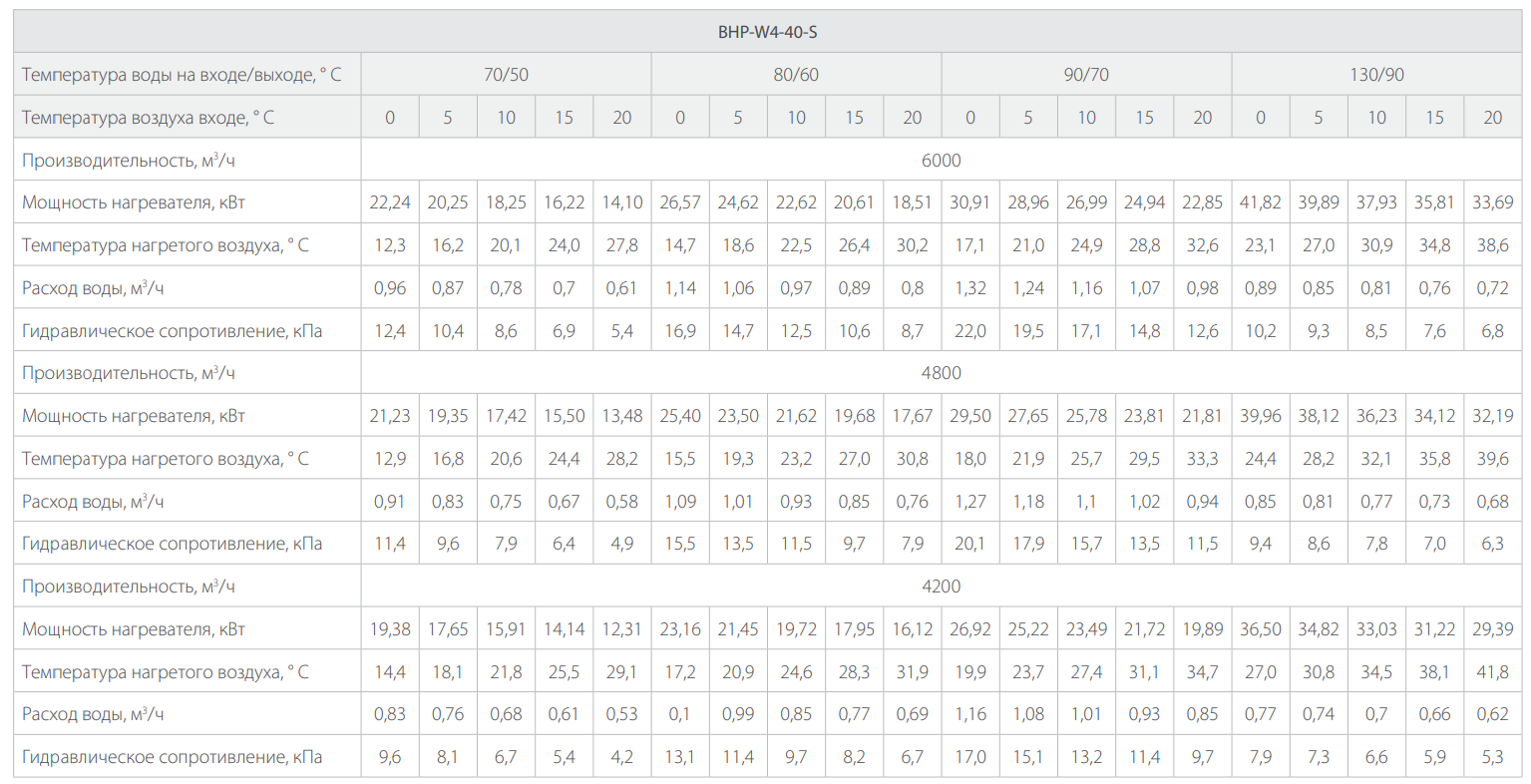 | Параметр / Модель | BHP-W4-40-S | BHP-W4-70-S | BHP-W4-100-S |