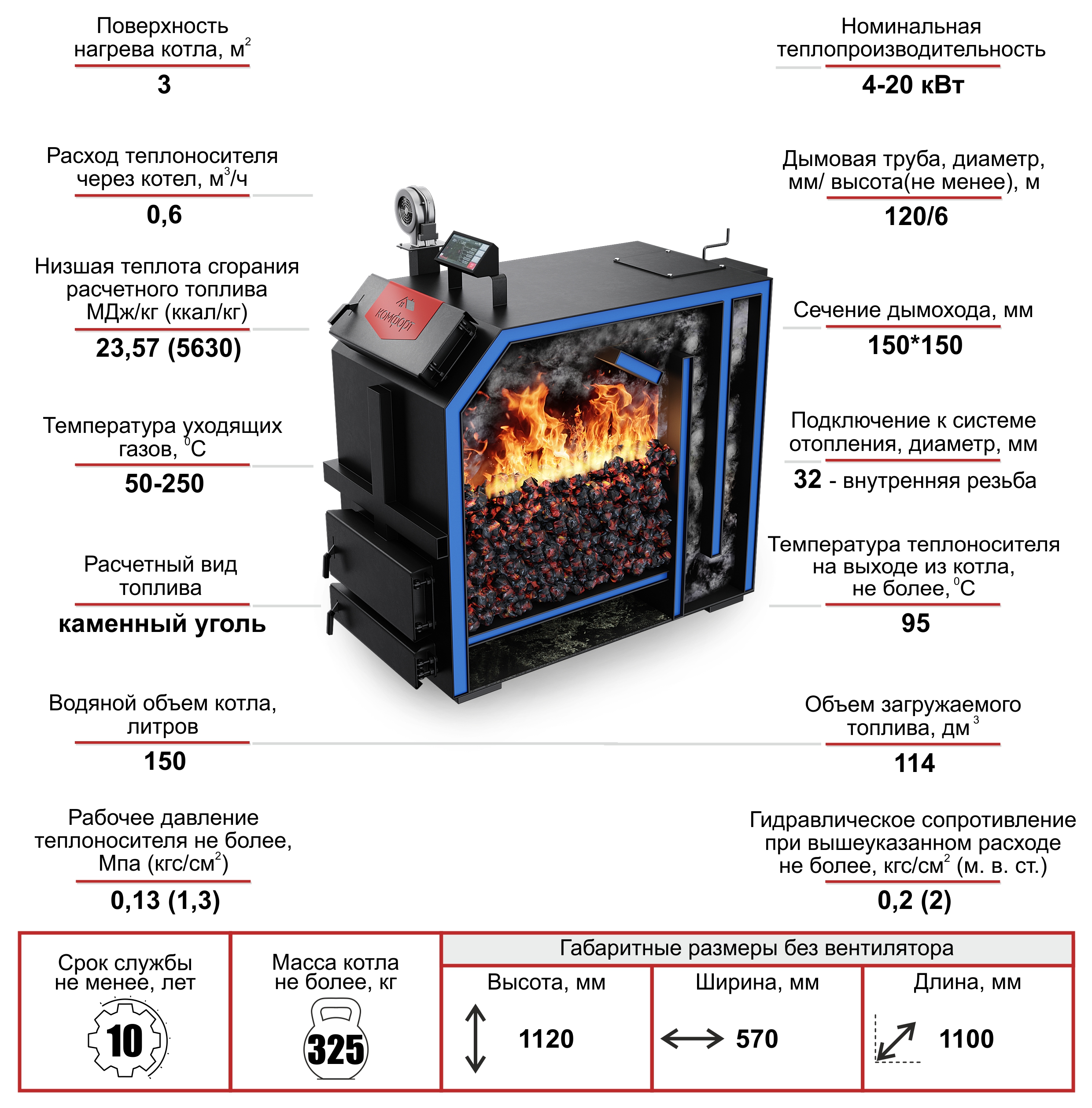 | Основное топливо | Уголь, Пеллеты, Дрова, Щепа, Топливные брикеты, Древесные отходы |