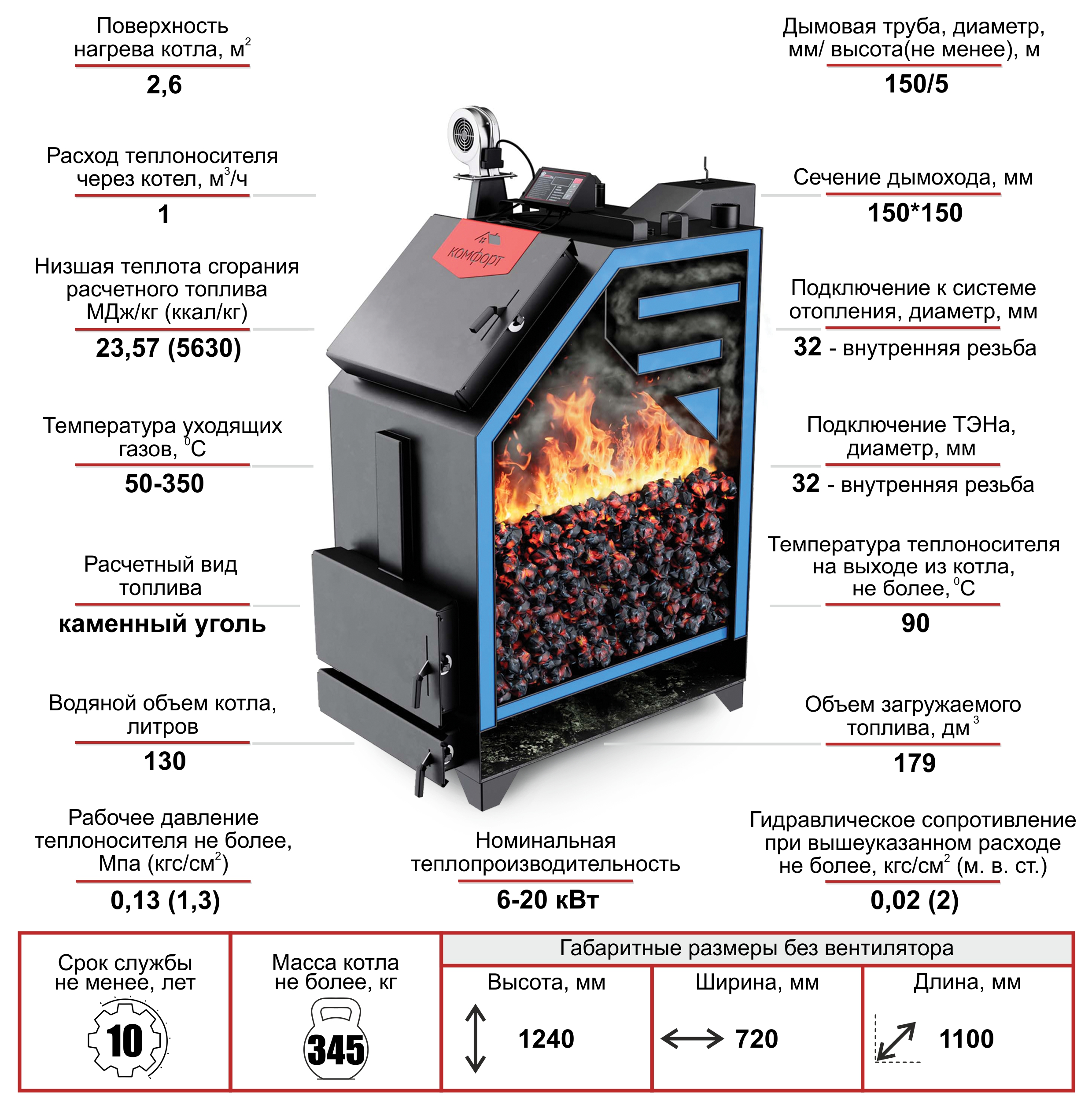 | Основное топливо | Уголь, Пеллеты, Дрова, Щепа, Топливные брикеты, Древесные отходы |
