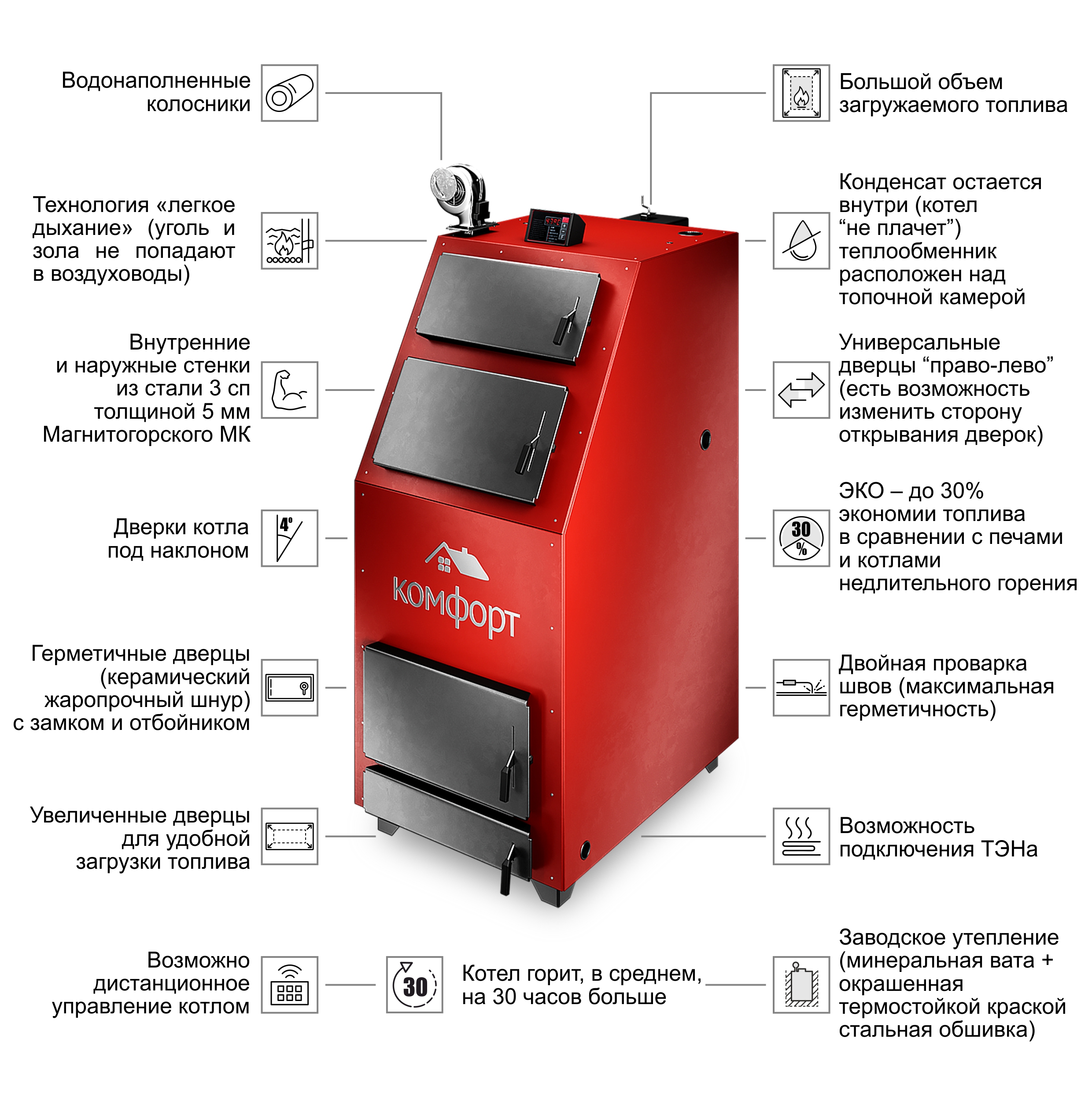 Преимущества котла Комфорт Практик Premium: