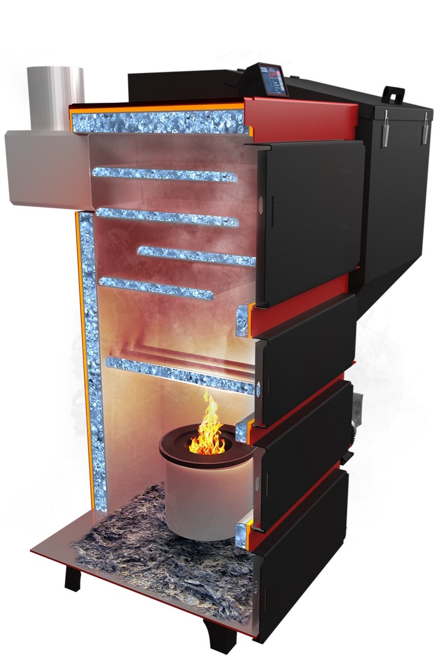 - Автоматическая подача топлива — шнековый механизм подает уголь из бункера по мере необходимости, избавляя от постоянного контроля.