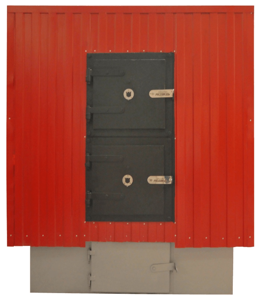 - Два дверных проёма топки размером 460×420 мм обеспечивают удобную загрузку топлива и обслуживание котла.