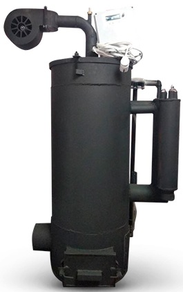 Принцип работы: поглощаемое из чаши подачи масла топливо преобразуется в тепло, от которого нагреваются трубки. В этих трубках вода нагревается до состояния пара. При помощи пароотвода насыщенный пар передается напрямую теплоносителю и выходит вертикально или горизонтально в зависимости от расположения парогенератора.