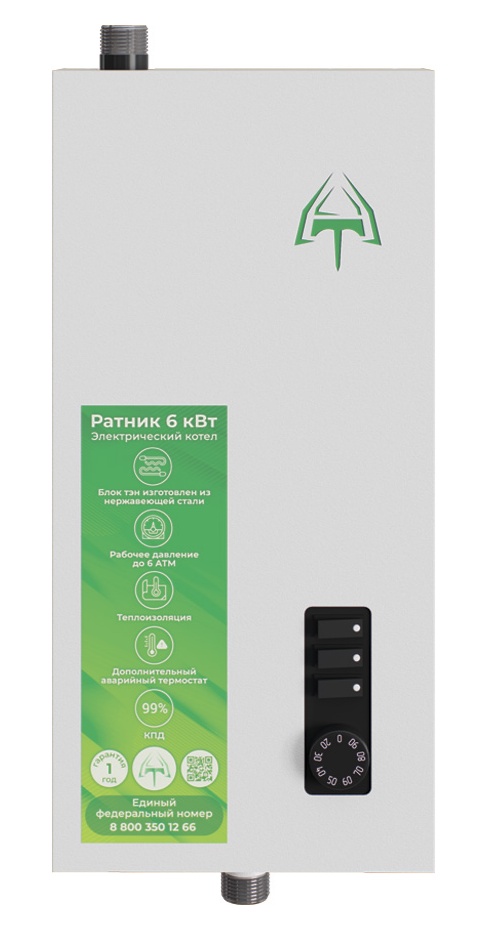 Настенный электрический котёл Ратник 3 — это современное решение, сочетающее в себе производительность, универсальность и продуманный до мелочей функционал. Мощность котла 3 кВт позволяет эффективно обогреть помещение площадью до 30 м², а КПД 99% делает его работу максимально экономичной. Идеально подходит для частных домов, дач, гаражей, мастерских. Надёжный ТЭН, продуманная автоматика и защита от перегрева делают его отличным выбором как для основного, так и резервного отопления. «Ратник» справится в любой ситуации.