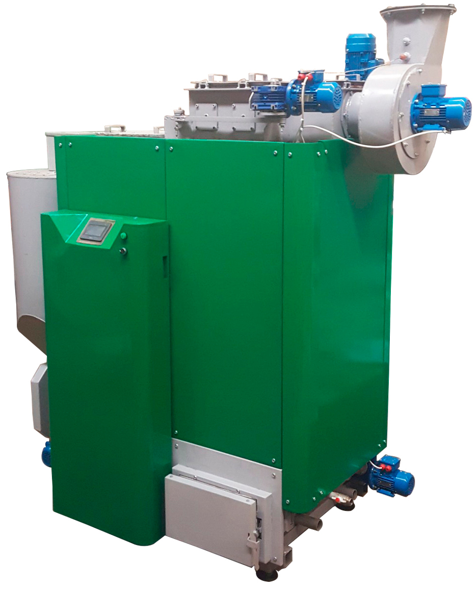 - системой управления котлом на промышленном котроллере с ПИД регулированием и сенсорным экраном;