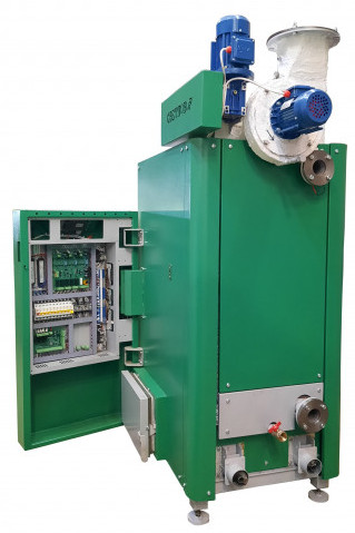 - системой управления котлом на промышленном котроллере с ПИД регулированием и сенсорным экраном;