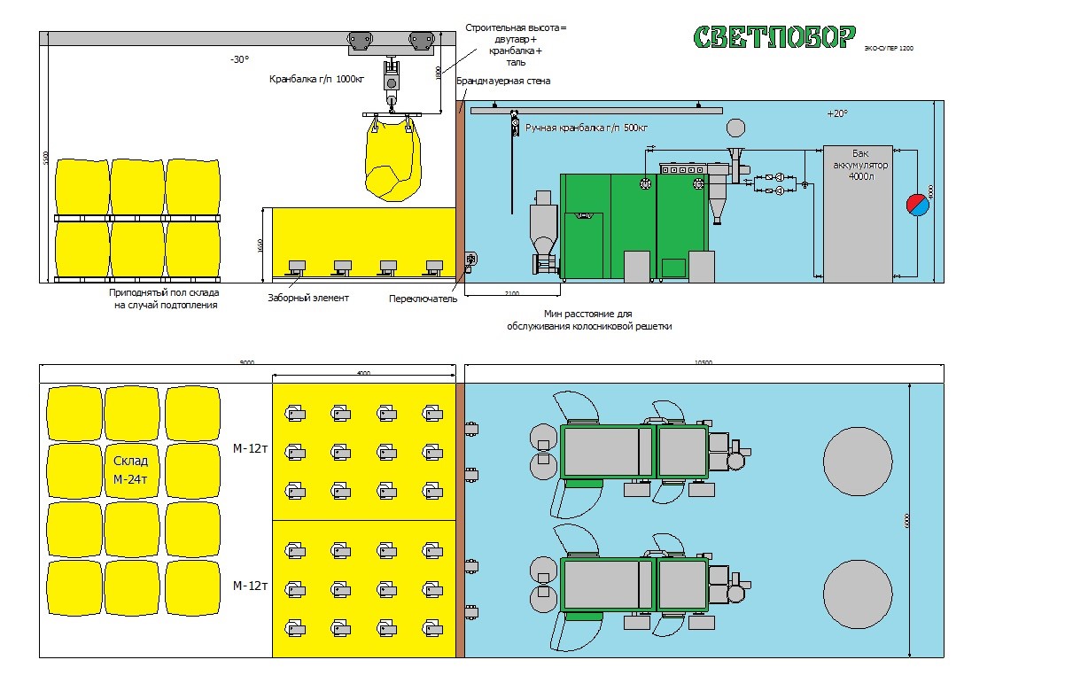 За счет расширения склада с хранением в биг-бэгах в два этажа можно легко увеличить время автономной работы котельной.