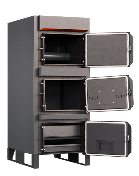 - Котел оснащен большими и удобными дверцами с механизмом затяжки плотности прилегания, благодаря этому его удобно чистить и обслуживать;