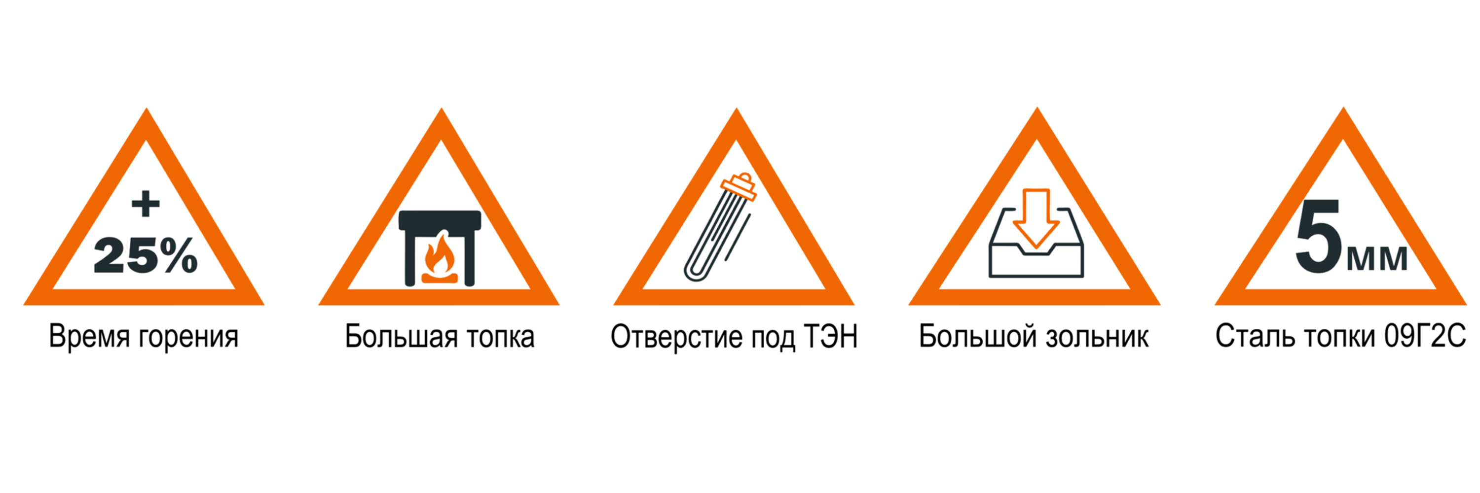 Топка котла, а также все поверхности теплообменника, которые взаимодействуют с огнем или подвержены высоким температурам во время работы, выполнены из стали марки 09Г2С толщиной 5 мм.