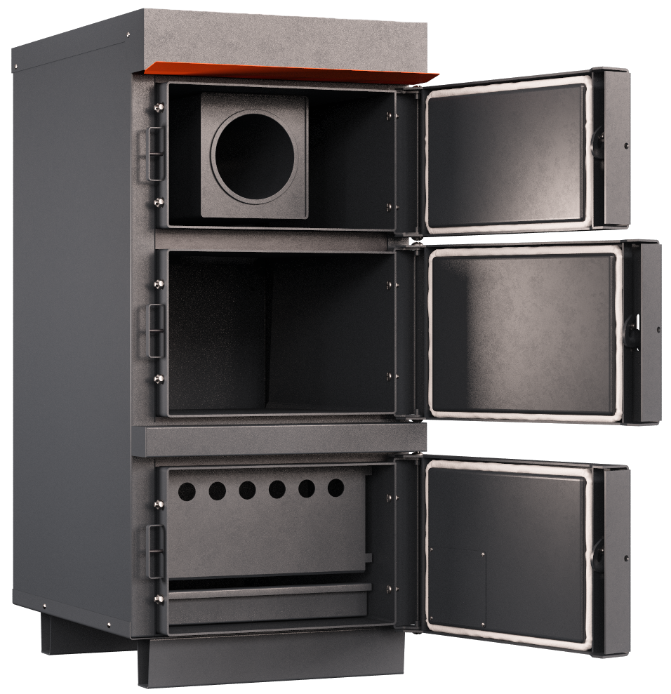 - Котел оснащен большими и удобными дверцами с механизмом затяжки плотности прилегания, благодаря этому его удобно чистить и обслуживать;